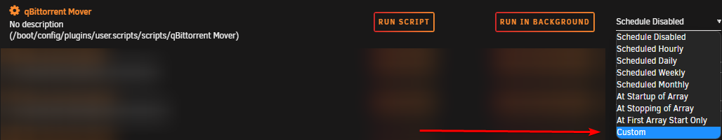 Finally, you will need to choose RUN IN BACKGROUND or restart your unRAID server to install the qbittorrent-api module.