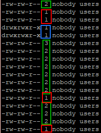 - Blue rectangle - Folders/Directories you will need to go into them to check if the files are hardlinked.