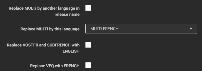 - Dual Audio: If you want to have Dual Audio releases (original and English audio) in case Radarr does not find a VOSTFR or MULTi release.